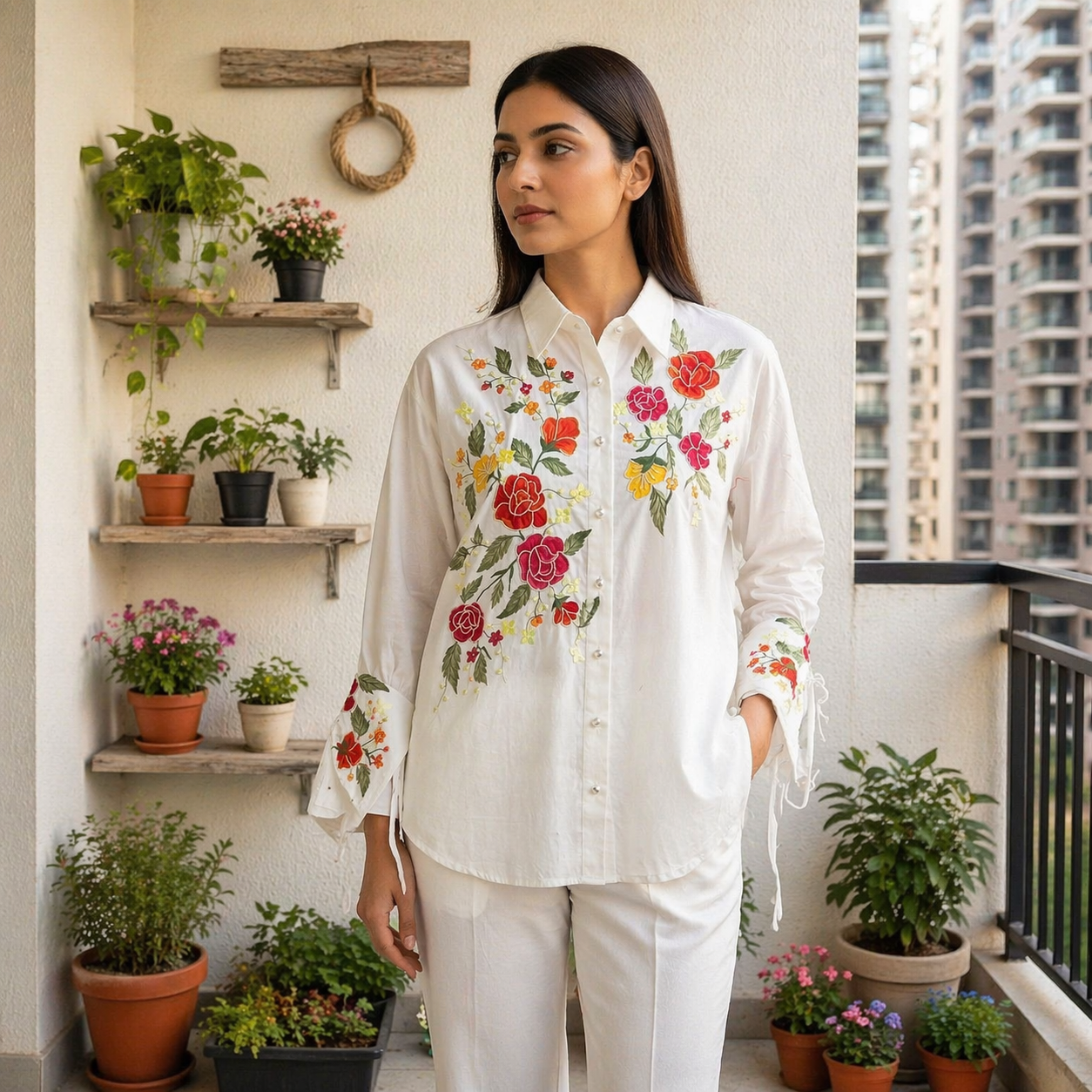 The classic white hue and detailed embroidery make this shirt a wardrobe essential. Dress it up with tailored trousers for an office-ready ensemble or pair it with your favorite denims for a laid-back yet polished look. Elevate your everyday style effortlessly!