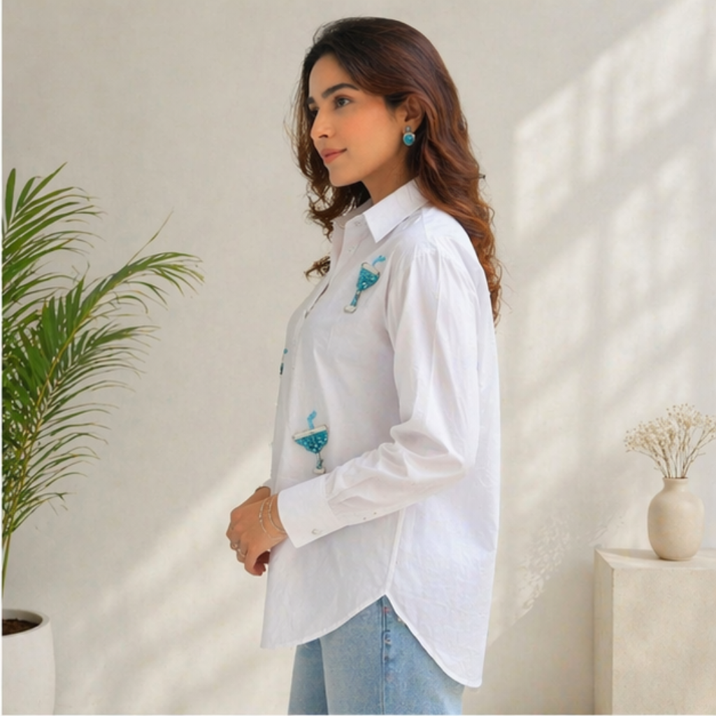 Made with high-quality materials, this shirt combines durability with timeless elegance. The eye-catching cocktail embroidery adds a distinctive charm, making it a versatile addition to your wardrobe.